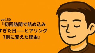 シリーズ①:Re:START NOTE|”止まりながら進む日々” vol.50『初回訪問で詰め込みすぎた日——ヒアリング7割に変えた理由』 話した“量”が、信頼の“質”を下げていた。 初回から機能説明と事例を山ほど並べ、相手の課題を取りこぼしたのは私だ。 社長として「短時間で価値を証明したい」という焦りが、デモと実績の洪水を生んだ。相手はうなずくが、次の約束は曖... 2025.09.05 okin_san シリーズ①:Re:START NOTE|”止まりながら進む日々”