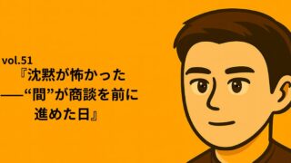 シリーズ①:Re:START NOTE|”止まりながら進む日々” vol.51『沈黙が怖かった——“間”が商談を前に進めた日』 言葉を足すほど、相手の本音が遠のいていた。 沈黙を埋めたのは私の不安で、沈黙を活かしたら相手の意思が動いた。 元社長として「価値を証明しなければ」と焦るたび、私は説明を重ねて“間”を消していた。うなずきは増えるのに、決まらな... 2025.09.06 okin_san シリーズ①:Re:START NOTE|”止まりながら進む日々”