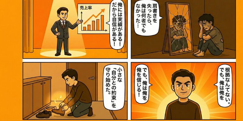 誰も見ていない場所で、自分との約束を裏切らない。その微かな積み重ねが、冷え切った俺の心に小さな灯をともした。「実績はない。でも、俺は自分の決めたことをやり遂げた」。その手触りこそが、外側に依存しない、本当の意味での「根拠なき自信」の正体だったんだ。