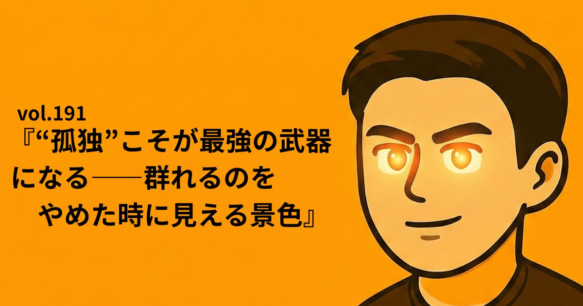 vol.191『“孤独”こそが最強の武器になる——群れるのをやめた時に見える景色』