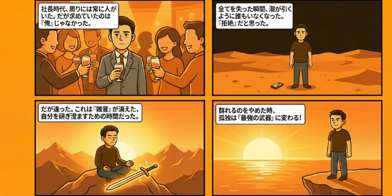 今、孤独を感じている君へ。それは君が「自分自身の人生」を歩み始めた証拠だ。群れから離れる勇気が、君をかつてない高みへと連れていってくれる。その景色を、一緒に見にいこうじゃないか。