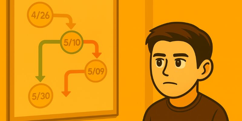 三色の矢印と日付で“止まる場所”を可視化する見取り図