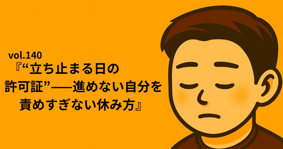 再スタートしてからも、あの日の感覚が抜けず、「今日は進めない」と感じるたびに、自分を責めてしまう癖が顔を出す。でも、あの頃と同じ走り方を続けたら、今度こそ本当に動けなくなる——そう思ってから、“立ち止まる日の許可証”を、自分に出すようになった。