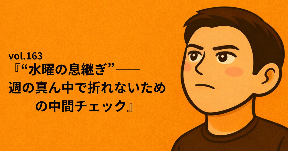 俺は元社長の頃、週の真ん中で息が上がってるのに気づかず、金曜に爆発してた。今は違う。水曜に“息継ぎ”を入れる。