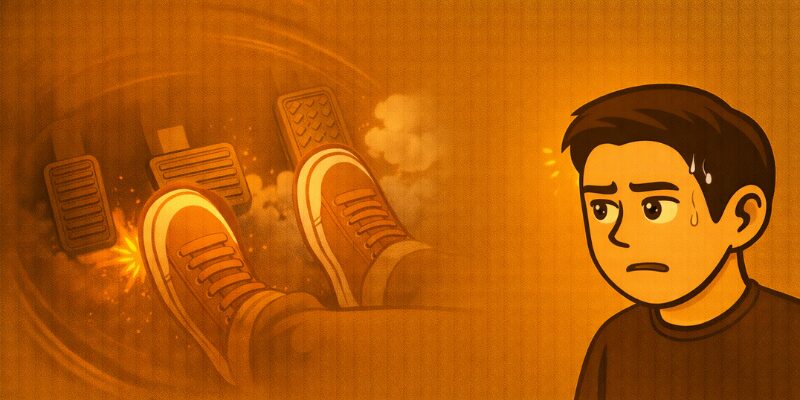 アクセルを踏む足と、同時にブレーキも踏んでしまう“空回り”を象徴した見出し画像