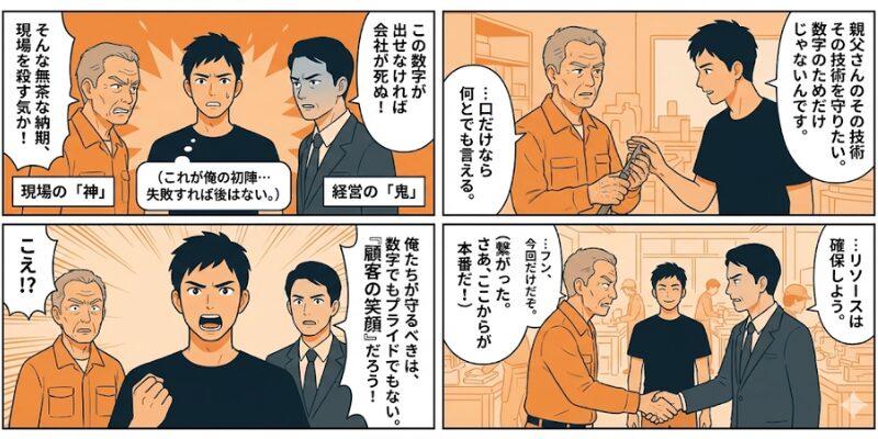 経営の効率も、現場のこだわりも、どちらが優れているか比べること自体がナンセンスだったんだ。俺は「ROA」や「KPI」といった経営用語を一切封印した。その代わりに、「明日、現場の連中が笑って帰れるようにするために、この数字が必要なんです」と、むき出しの感情で語りかけた。