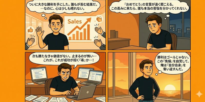 裏切り者に打ち勝ち、奪われた信頼をコンペで奪還した。営業の世界において、これ以上のカタルシスはないはずだ。だが、シャンパングラスの泡が消える頃、俺を襲ったのは強烈な「焦燥」と、仲間との間に生じた見えない壁だった。
