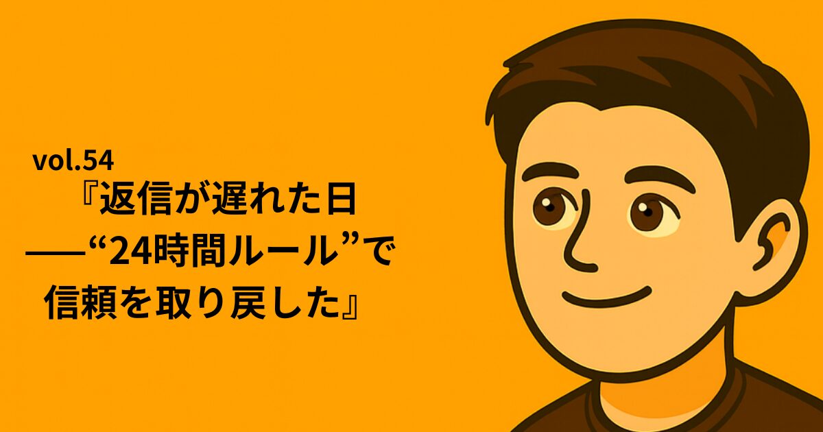 元社長の私は、提案書づくりを優先して返信を後回しにした。たった48時間の遅れが、社外の信頼と社内のリズムを崩した。忙しいのは理由にならない——そう腹を括り、「24時間ルール」を会社の営業標準にした。