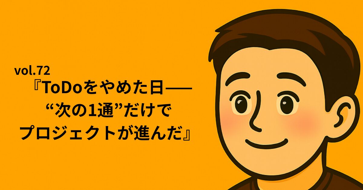 そこでToDoを捨て、“Next One Email”運用へ。今日の1通が出れば、明日の10通はいらない——そう腹を決めたら、案件が前に転がり出した。