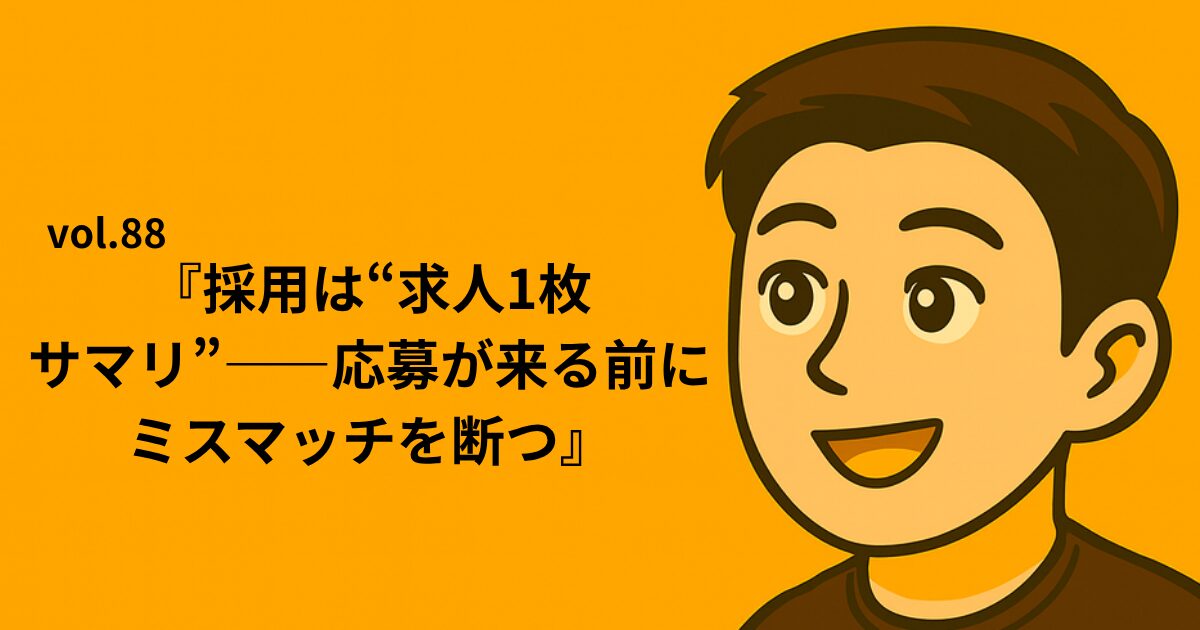 vol.88『採用は“求人1枚サマリ”——応募が来る前にミスマッチを断つ』